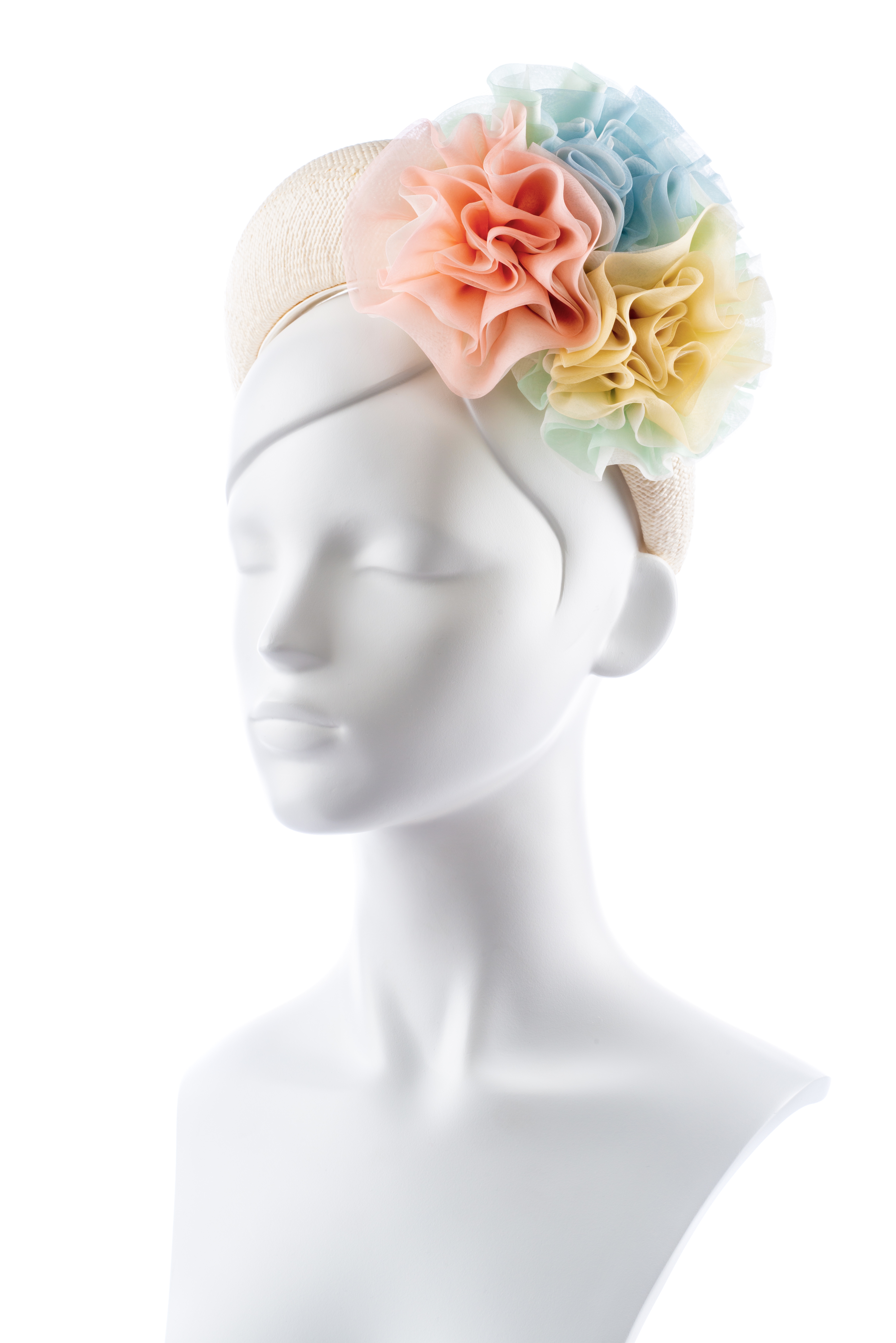 Ivory Panama straw Headband with Triple Silk Organza Roses