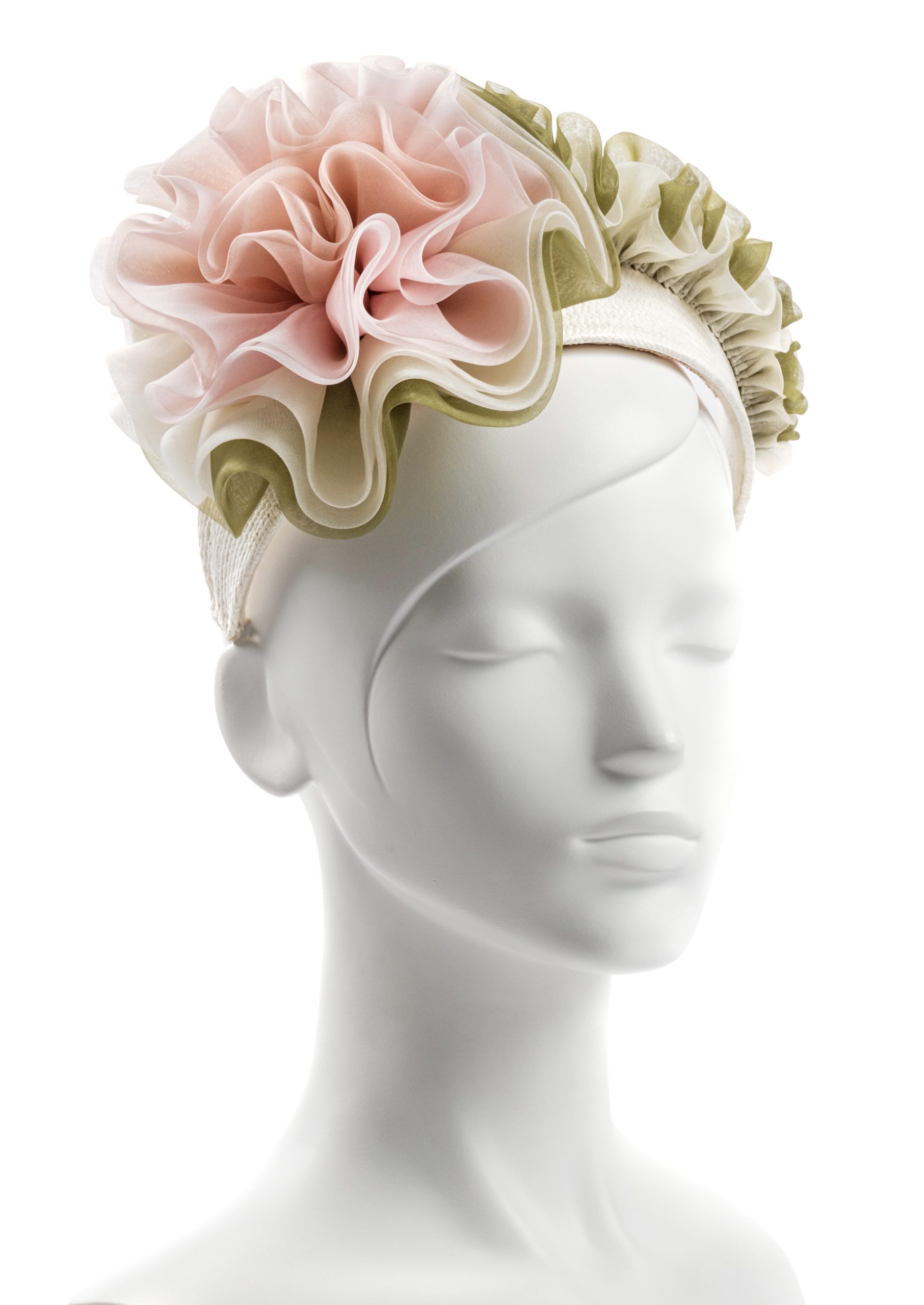 Ivory Panama 10cm Halo With Silk Organza Rose and Ruffled Stem Detail
