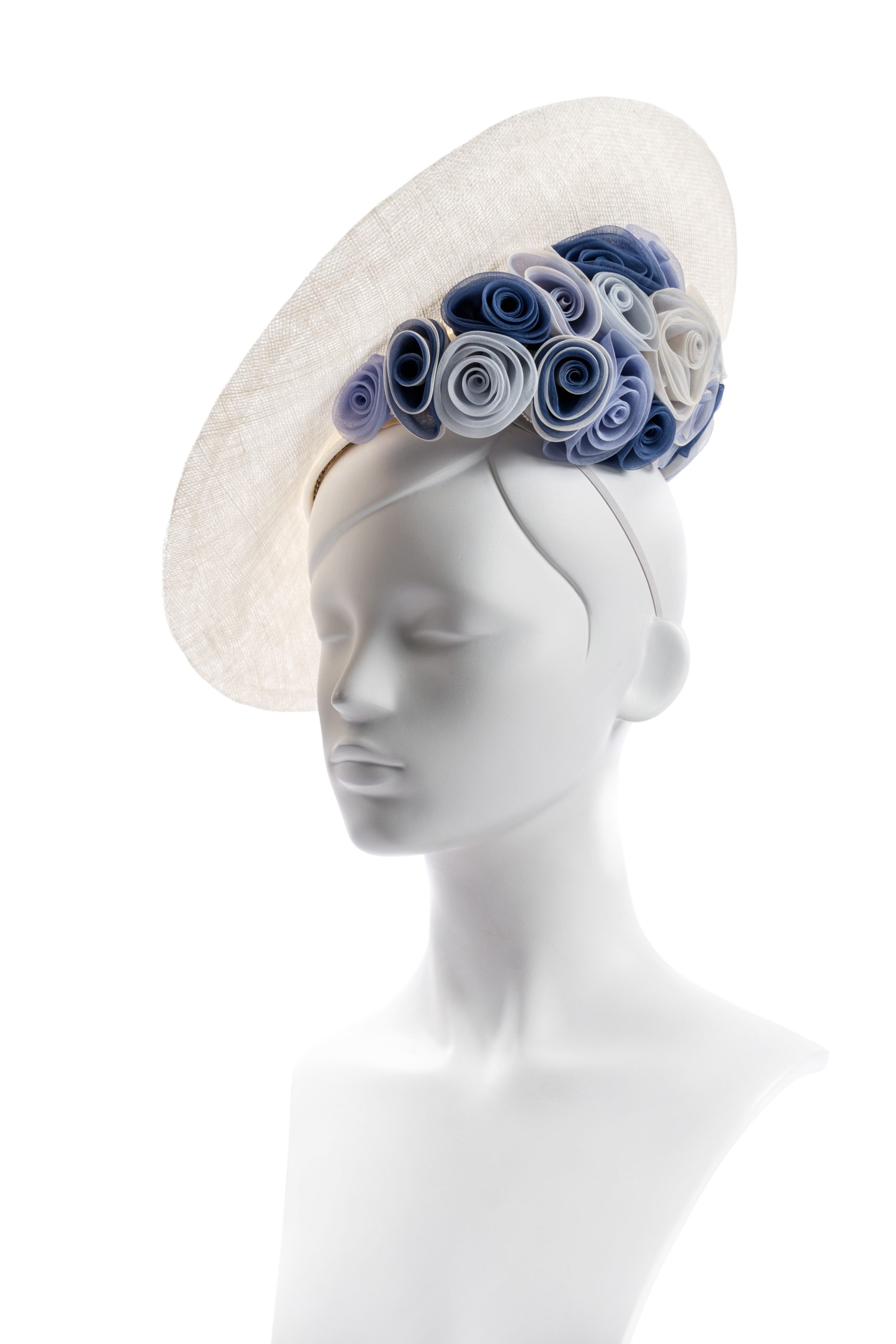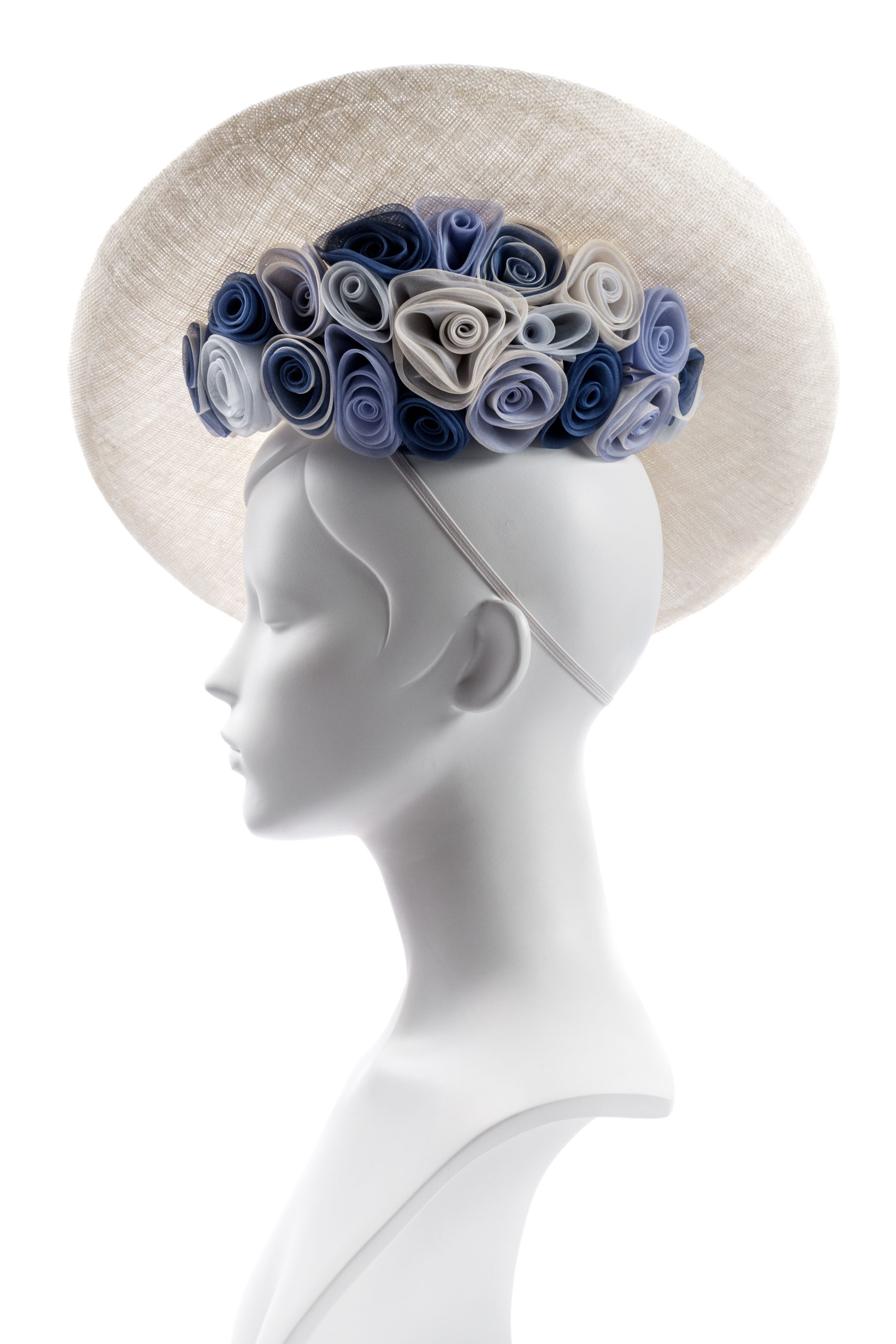 Ivory Sinamay Saucer With Silk Organza Rose Crescent